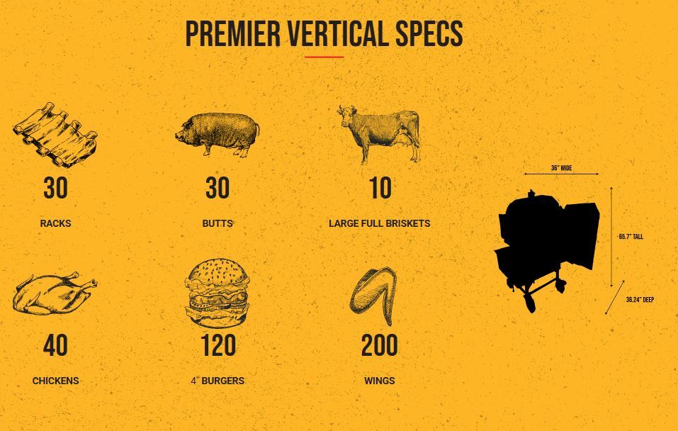 The Premier Vertical Pellet Smoker is built for those who demand precision, performance, and reliability all year long. With a fully welded steel body, double-wall insulation, and a vertical design engineered for even heat distribution, this smoker delivers consistent results from top to bottom. Whether you’re slow-smoking brisket, roasting whole turkeys, or hanging sausage links, every cook is effortless and perfectly balanced.